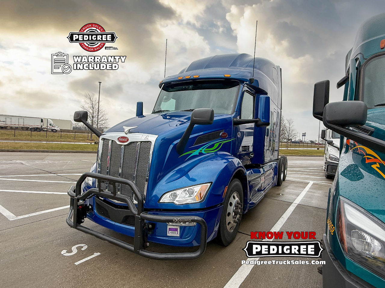 We stand by our trucks, so we're including a FREE warranty package with our Petes! No Sweat Peterbilt Protection with Pedigree's custom warranty package on any of our used 2023 Peterbilt 579 Ultraloft Semi-Trucks!