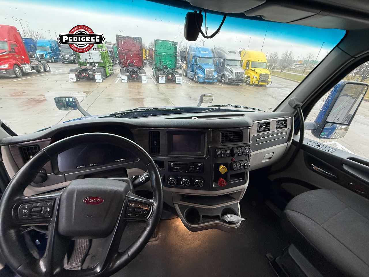 This Pete is powered by a Paccar MX-13 455 horsepower @ 1600 RPM & 1650 torque @ 900 RPM paired with the 12 speed Paccar automated direct drive transmission with neutral coast mode equipped. Spacious 80” high roof sleeper with platinum interior keeps you running in style.
