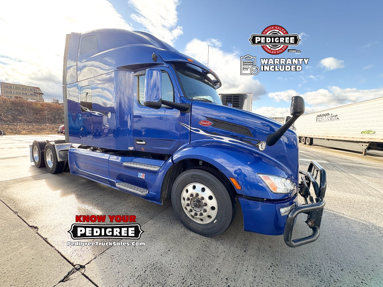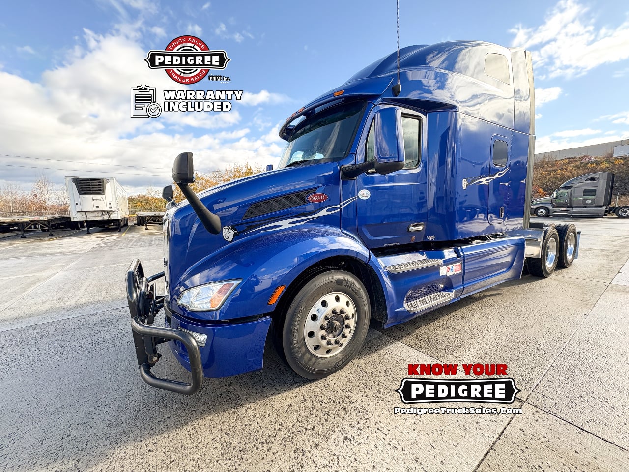 We stand by our trucks, so we're including a FREE warranty package with our Petes! No Sweat Peterbilt Protection with Pedigree's custom warranty package on any of our used 2023 Peterbilt 579 Ultraloft Semi-Trucks!