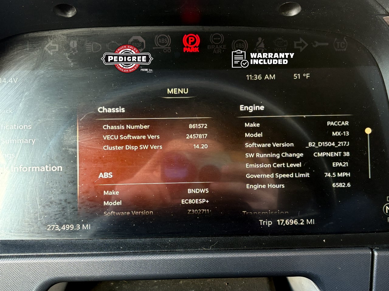 - * Paccar TX-12 12 Speed Automated Transmission with 1650 LB/FT of Torque @900 RPM along with a 2.64 Gear Ratio to give you the best fuel economy with awesome trailer pulling power