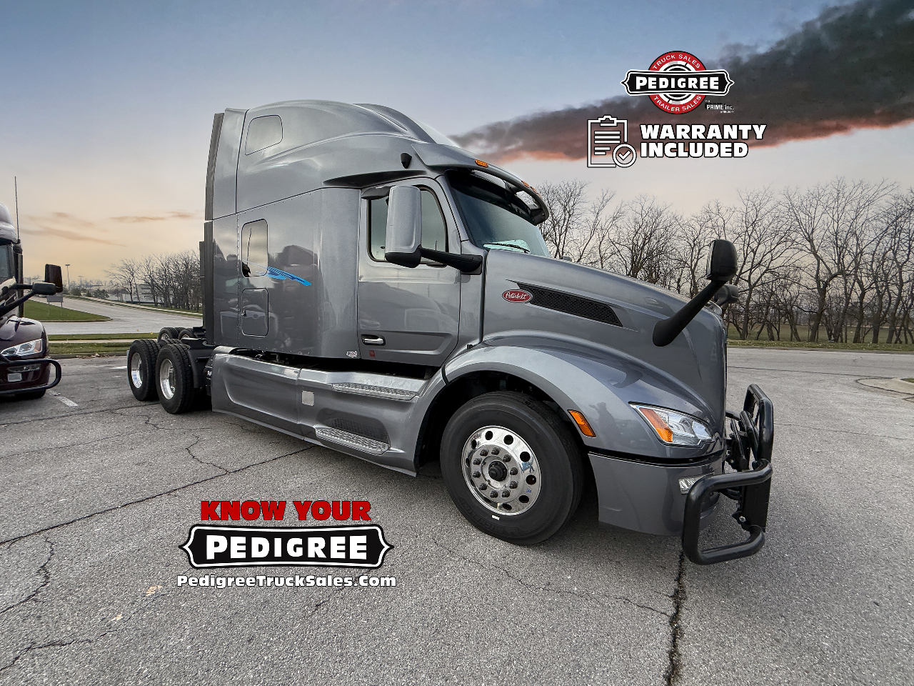 We stand by our trucks, so we're including a FREE warranty package with our Petes! No Sweat Peterbilt Protection with Pedigree's custom warranty package on any of our used 2023 Peterbilt 579 Ultraloft Semi-Trucks!