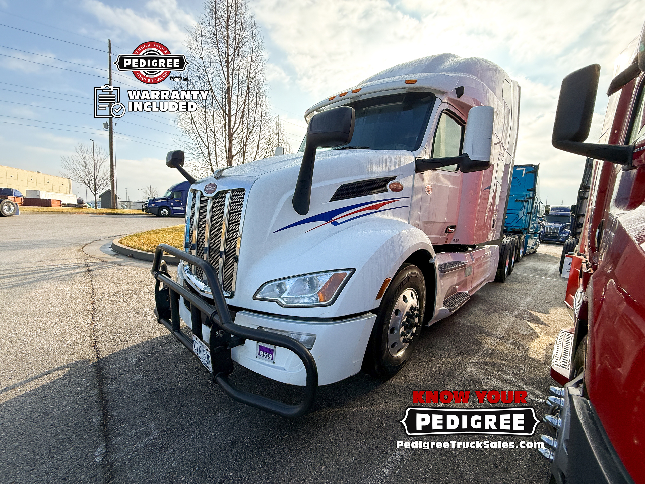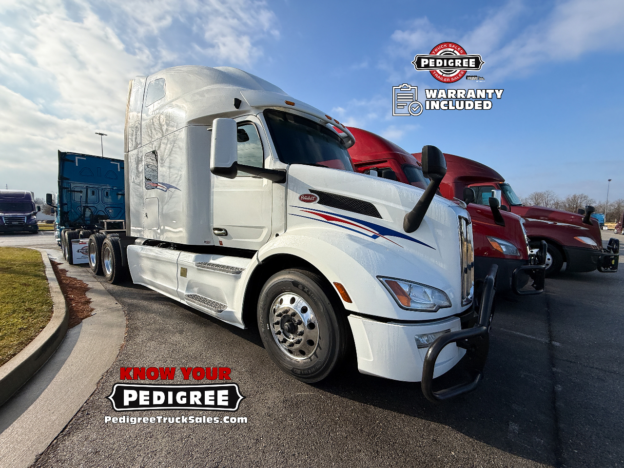 We stand by our trucks, so we're including a FREE warranty package with our Petes! No Sweat Peterbilt Protection with Pedigree's custom warranty package on any of our used 2023 Peterbilt 579 Ultraloft Semi-Trucks!
