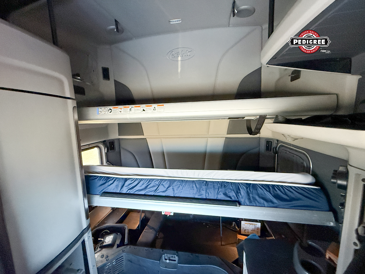 This Pete is powered by a Paccar MX-13 455 horsepower @ 1600 RPM & 1650 torque @ 900 RPM paired with the 12 speed Paccar automated direct drive transmission with neutral coast mode equipped. Spacious 80” high roof sleeper with platinum interior keeps you running in style.