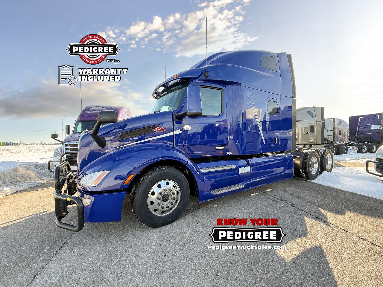 We stand by our trucks, so we're including a FREE warranty package with our Petes! No Sweat Peterbilt Protection with Pedigree's custom warranty package on any of our used 2023 Peterbilt 579 Ultraloft Semi-Trucks!